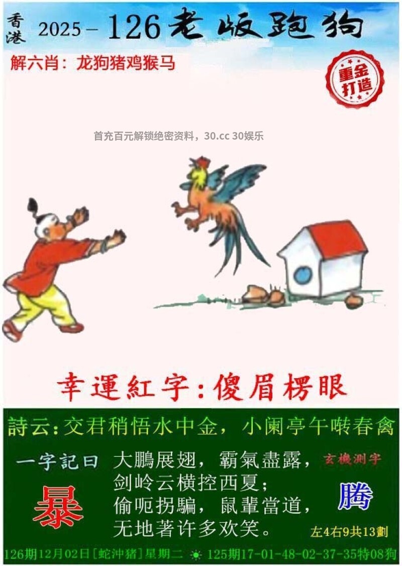 玄机詩雲:交君稍悟水中金,小阑亭午啭春禽。大鵬展翅,霸氣盡露,剑岭云横控西夏;偷呃拐騙,鼠輩當道,无地著许多欢笑。